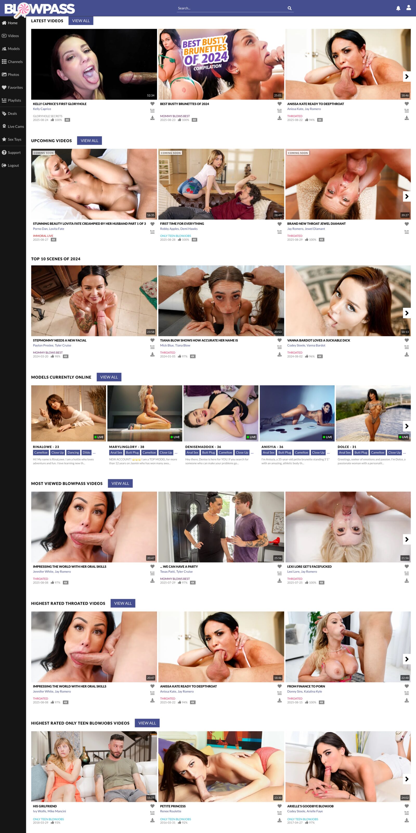 With Blowpass you get access to more than 6,750 exclusive scenes from 5 subsites or channels. Most channels focus on (POV-style) blowjob videos, like Only Teen Blowjobs, 1000 Facials, Mommy Blows Best and the deepthroating blowjob site Throated. You’ll also get access to Immoral Live, featuring a lot of live sex shows.
